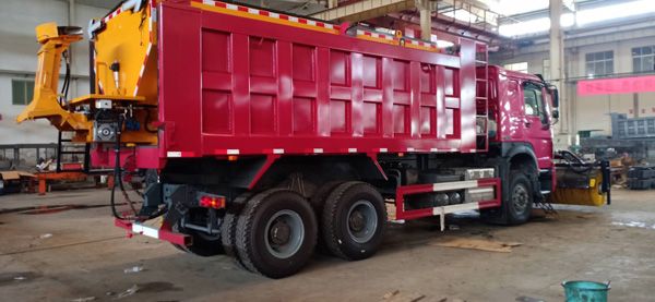 該車不僅適用于北方城市及公路冬季鏟雪、拋灑融雪劑融雪作業(yè),在無雪季節(jié),可以將安裝在汽車前部的推雪鏟輕松拆除,并裝上后門板,此時就變?yōu)橐惠v普通的自卸車,可以運(yùn)輸污泥、建筑垃圾、道路廢棄物等,并可以選裝灑水罐及護(hù)欄清洗機(jī)使一車多用,充分提高了設(shè)備的利用率,并為使用部門節(jié)約了大量的設(shè)備投入資金,為城鄉(xiāng)的美化和發(fā)展做出應(yīng)有的貢獻(xiàn)。