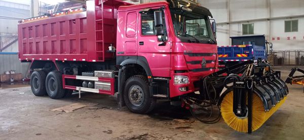 多功能除雪車是在ZZ3251M3649W型6*4自卸汽車的基礎(chǔ)上,加裝除雪裝置和融雪劑撒布裝置開發(fā)研制的集多種于一身的特種用途車輛,主要用于道路除雪、運(yùn)輸積雪、渣土(污泥)清運(yùn)等作業(yè),整車結(jié)構(gòu)布局合理,操作方便、簡單、鏟雪和拋灑融雪劑的作業(yè)效率高,調(diào)節(jié)范圍廣,特別適合于國內(nèi)外城市環(huán)衛(wèi)、公路、市政等部門使用。動力強(qiáng)勁、除雪效率高。